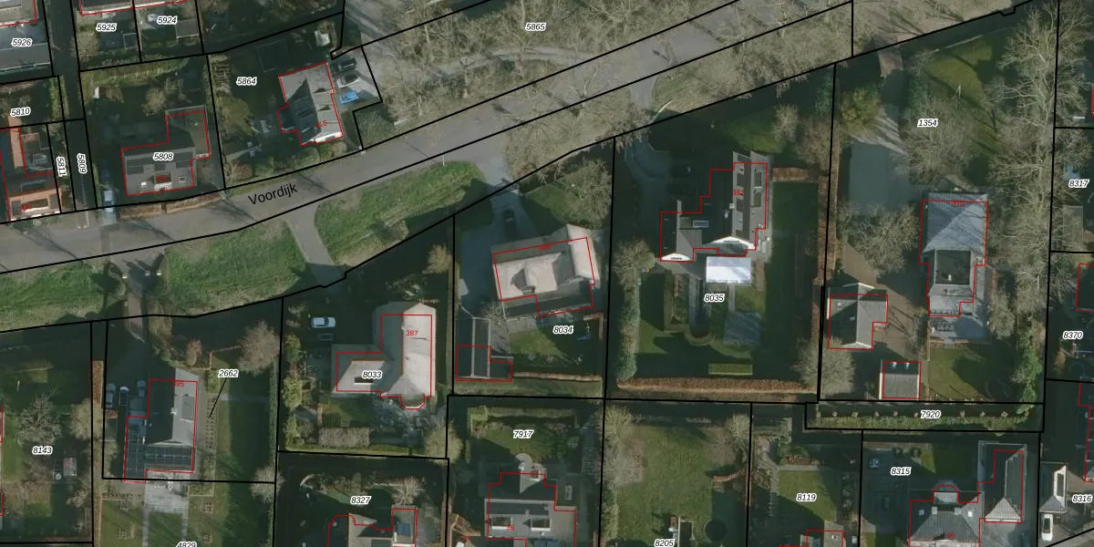 Het perceel waarop Voordijk 385 staat heeft een oppervlakte van 1152 m². Dit is een zeer groot perceel. De perceeloppervlakte wordt geregistreerd door het Kadaster. Gedetailleerde informatie over de maten van dit perceel kunt u vinden in het rapport Kadastrale kaart met maatvoering van Voordijk 385.