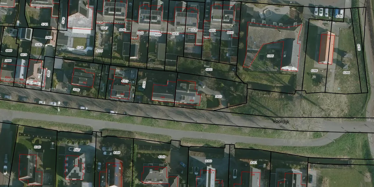 Het perceel waarop Voordijk 442 staat heeft een oppervlakte van 580 m². Dit is een groot perceel. De perceeloppervlakte wordt geregistreerd door het Kadaster. Gedetailleerde informatie over de maten van dit perceel kunt u vinden in het rapport Kadastrale kaart met maatvoering van Voordijk 442.