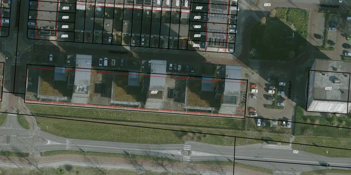 Het perceel waarop Weerkant 114 staat heeft een oppervlakte van 2768 m². Dit is een zeer groot perceel. De perceeloppervlakte wordt geregistreerd door het Kadaster. Gedetailleerde informatie over de maten van dit perceel kunt u vinden in het rapport Kadastrale kaart met maatvoering van Weerkant 114.