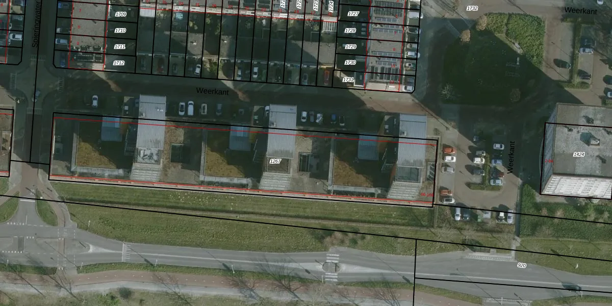 Het perceel waarop Weerkant 96 staat heeft een oppervlakte van 2768 m². Dit is een zeer groot perceel. De perceeloppervlakte wordt geregistreerd door het Kadaster. Gedetailleerde informatie over de maten van dit perceel kunt u vinden in het rapport Kadastrale kaart met maatvoering van Weerkant 96.