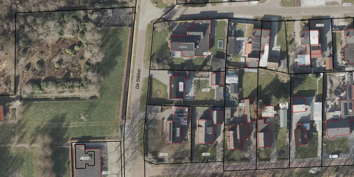 Het perceel waarop De Stikker 16 staat heeft een oppervlakte van 866 m². Dit is een groot perceel. De perceeloppervlakte wordt geregistreerd door het Kadaster. Gedetailleerde informatie over de maten van dit perceel kunt u vinden in het rapport Kadastrale kaart met maatvoering van De Stikker 16.