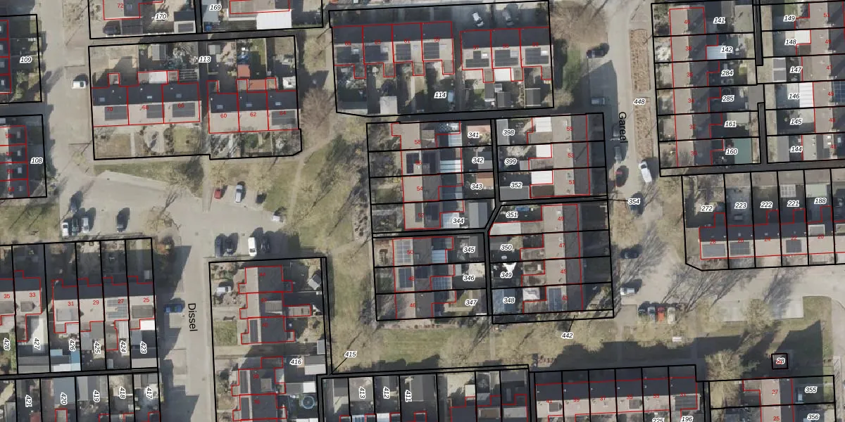 Gebruik de zoekbalk of klik op een perceel voor informatie over de adressen binnen dit perceel.