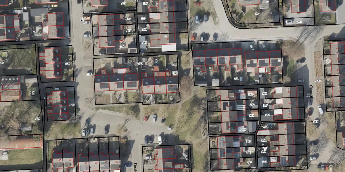 Het perceel waarop Dissel 64 staat heeft een oppervlakte van 1348 m². Dit is een zeer groot perceel. De perceeloppervlakte wordt geregistreerd door het Kadaster. Gedetailleerde informatie over de maten van dit perceel kunt u vinden in het rapport Kadastrale kaart met maatvoering van Dissel 64.