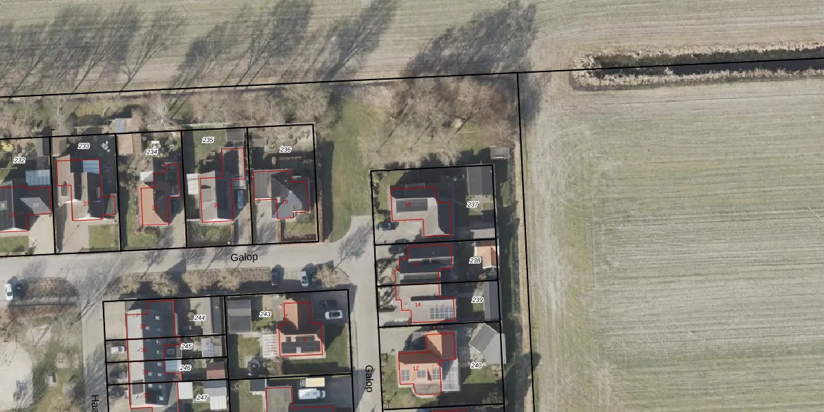Het perceel waarop Galop 18 staat heeft een oppervlakte van 531 m². Dit is een groot perceel. De perceeloppervlakte wordt geregistreerd door het Kadaster. Gedetailleerde informatie over de maten van dit perceel kunt u vinden in het rapport Kadastrale kaart met maatvoering van Galop 18.