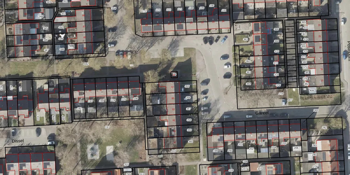 Het perceel waarop Gareel 27 staat heeft een oppervlakte van 191 m². Dit is een middelgroot perceel. De perceeloppervlakte wordt geregistreerd door het Kadaster. Gedetailleerde informatie over de maten van dit perceel kunt u vinden in het rapport Kadastrale kaart met maatvoering van Gareel 27.