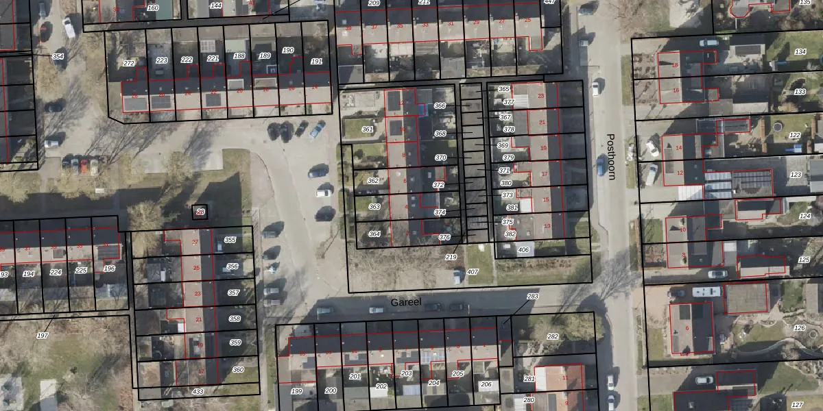 Het perceel waarop Gareel 4 staat heeft een oppervlakte van 163 m². Dit is een middelgroot perceel. De perceeloppervlakte wordt geregistreerd door het Kadaster. Gedetailleerde informatie over de maten van dit perceel kunt u vinden in het rapport Kadastrale kaart met maatvoering van Gareel 4.