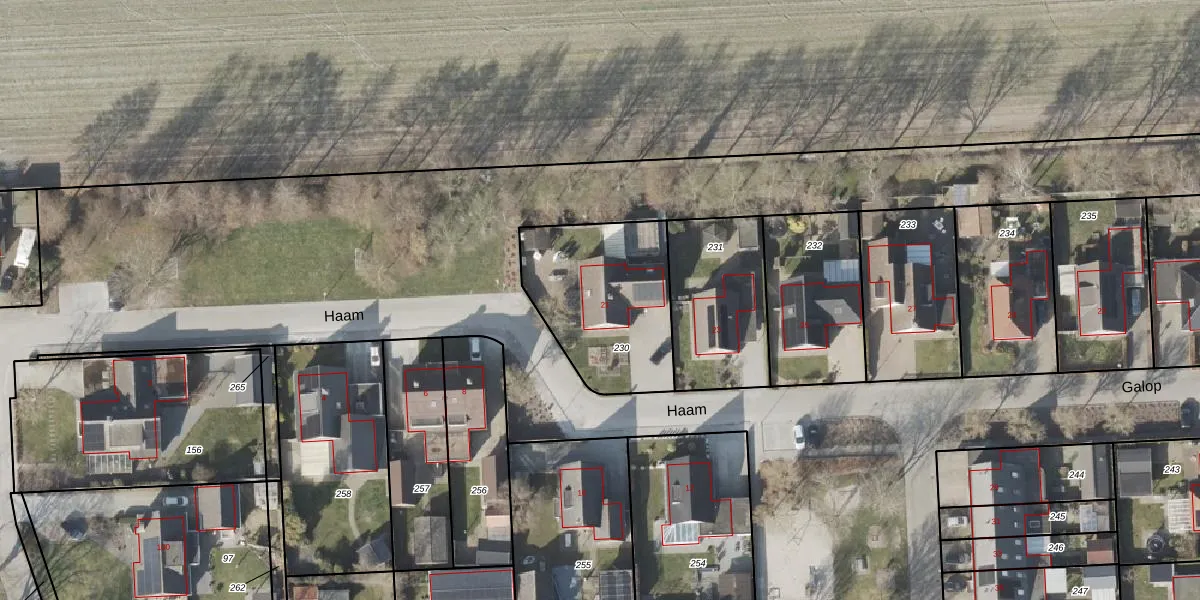 Het perceel waarop Haam 21 staat heeft een oppervlakte van 599 m². Dit is een groot perceel. De perceeloppervlakte wordt geregistreerd door het Kadaster. Gedetailleerde informatie over de maten van dit perceel kunt u vinden in het rapport Kadastrale kaart met maatvoering van Haam 21.
