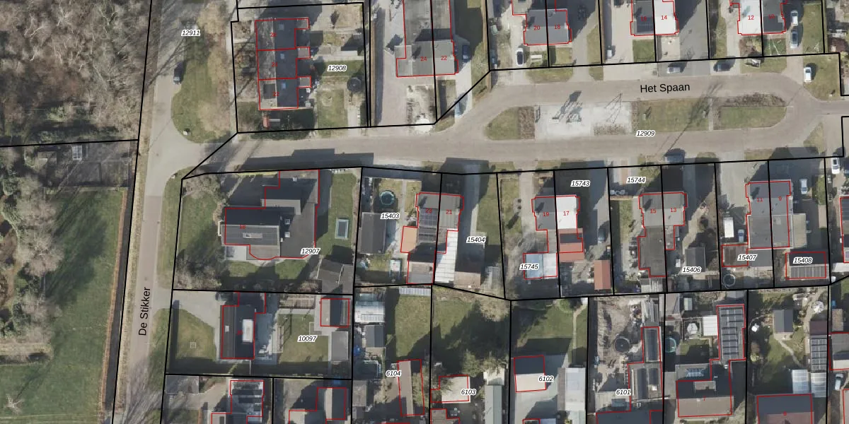 Het perceel waarop Het Spaan 23 staat heeft een oppervlakte van 513 m². Dit is een groot perceel. De perceeloppervlakte wordt geregistreerd door het Kadaster. Gedetailleerde informatie over de maten van dit perceel kunt u vinden in het rapport Kadastrale kaart met maatvoering van Het Spaan 23.