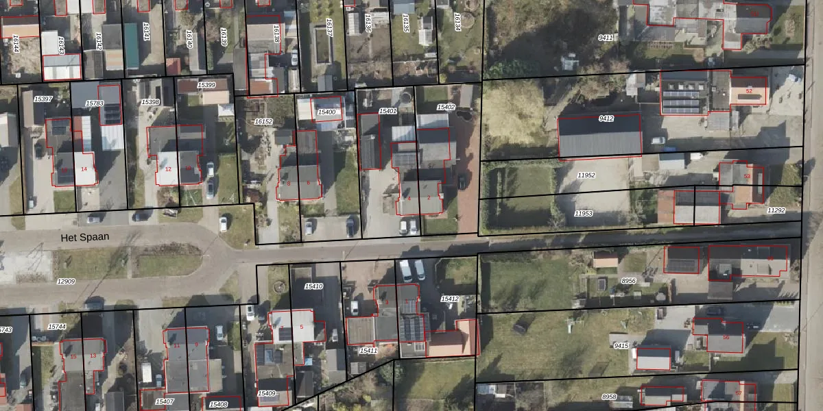Gebruik de zoekbalk of klik op een perceel voor informatie over de adressen binnen dit perceel.