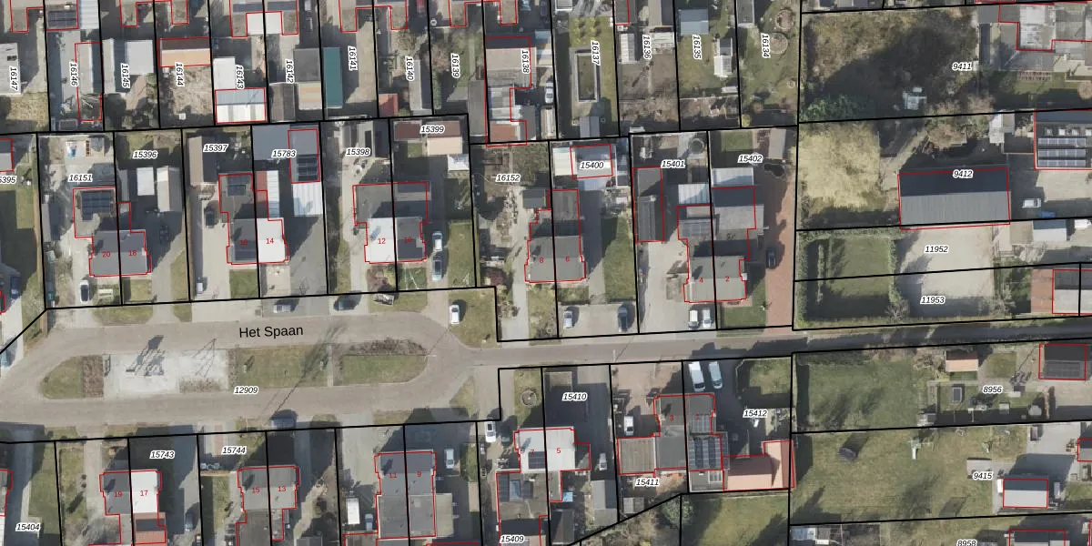 Het perceel waarop Het Spaan 8 staat heeft een oppervlakte van 495 m². Dit is een groot perceel. De perceeloppervlakte wordt geregistreerd door het Kadaster. Gedetailleerde informatie over de maten van dit perceel kunt u vinden in het rapport Kadastrale kaart met maatvoering van Het Spaan 8.