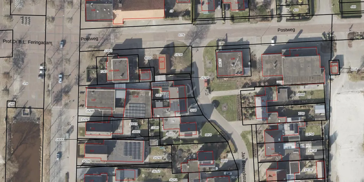 Gebruik de zoekbalk of klik op een perceel voor informatie over de adressen binnen dit perceel.