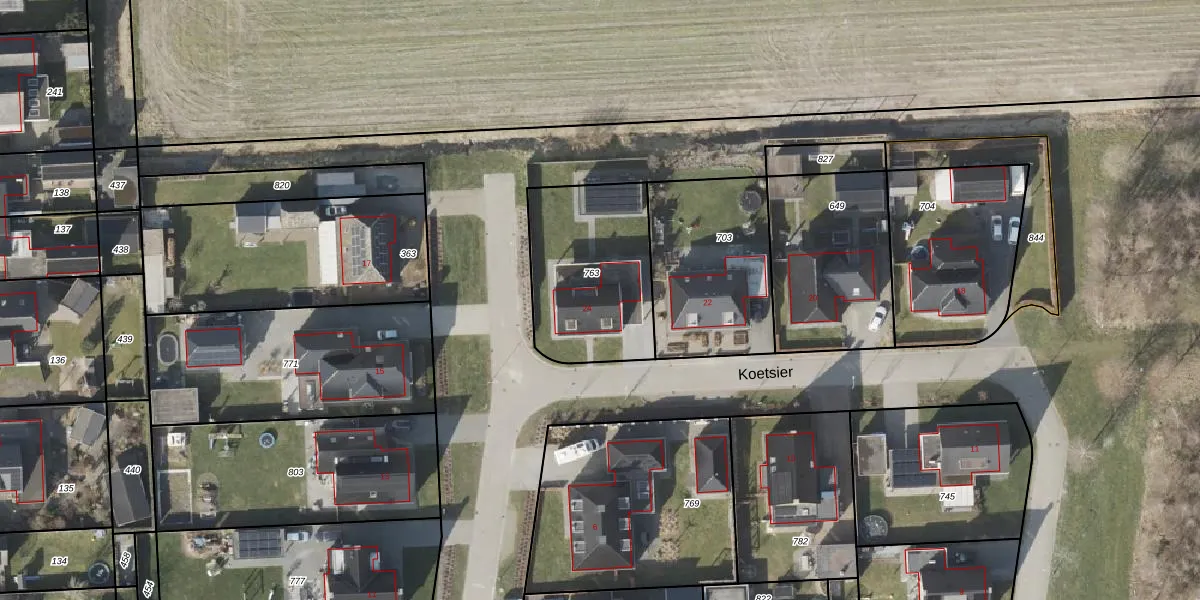 Het perceel waarop Koetsier 24 staat heeft een oppervlakte van 585 m². Dit is een groot perceel. De perceeloppervlakte wordt geregistreerd door het Kadaster. Gedetailleerde informatie over de maten van dit perceel kunt u vinden in het rapport Kadastrale kaart met maatvoering van Koetsier 24.