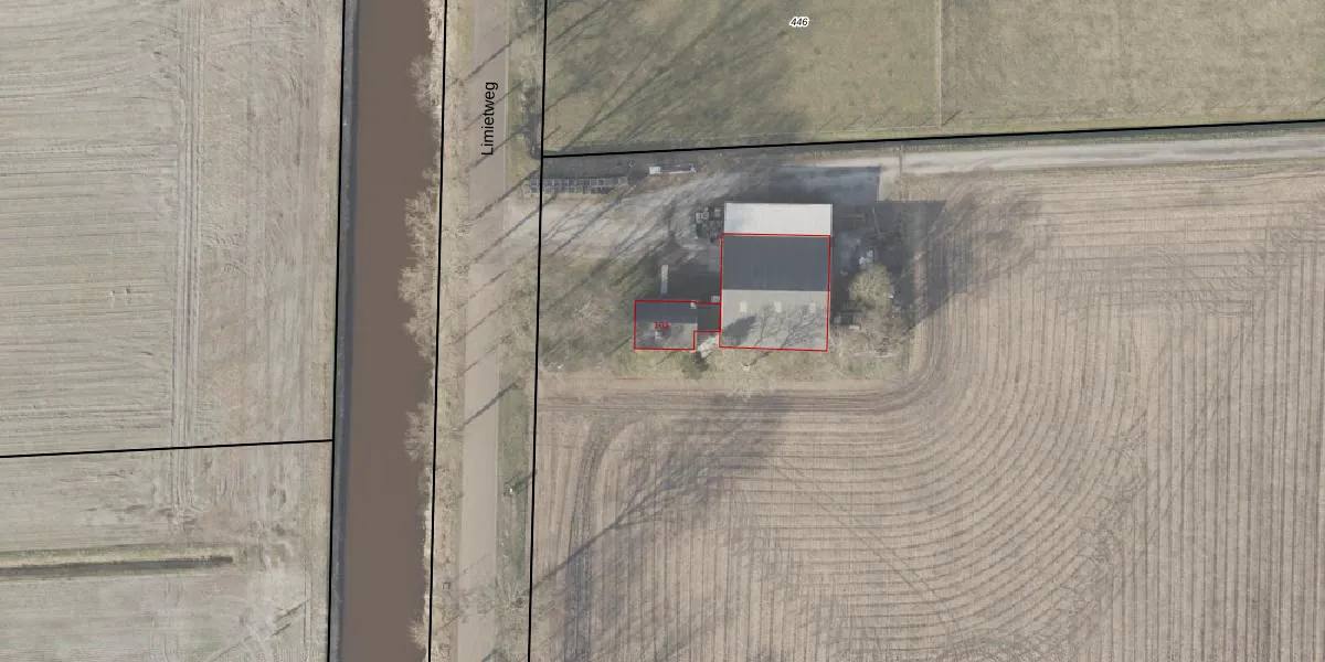 Het perceel waarop Limietweg 103 staat heeft een oppervlakte van 2,0 ha. Dit is een zeer groot perceel. De perceeloppervlakte wordt geregistreerd door het Kadaster. Gedetailleerde informatie over de maten van dit perceel kunt u vinden in het rapport Kadastrale kaart met maatvoering van Limietweg 103.