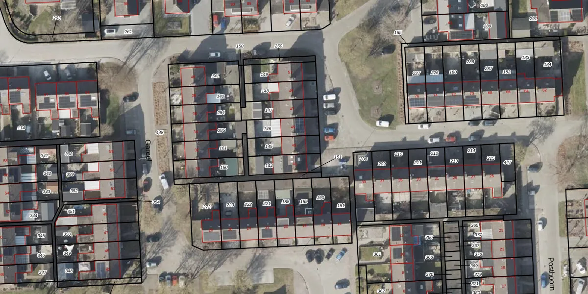 Het perceel waarop Posthoorn 43 staat heeft een oppervlakte van 153 m². Dit is een middelgroot perceel. De perceeloppervlakte wordt geregistreerd door het Kadaster. Gedetailleerde informatie over de maten van dit perceel kunt u vinden in het rapport Kadastrale kaart met maatvoering van Posthoorn 43.