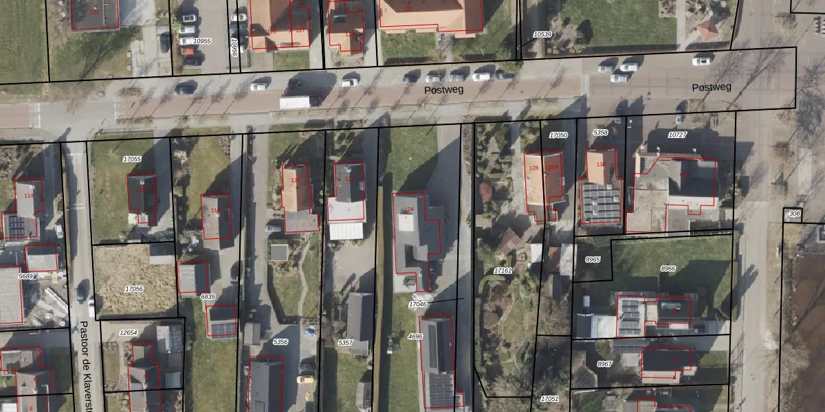 Het perceel waarop Postweg 124 staat heeft een oppervlakte van 1655 m². Dit is een zeer groot perceel. De perceeloppervlakte wordt geregistreerd door het Kadaster. Gedetailleerde informatie over de maten van dit perceel kunt u vinden in het rapport Kadastrale kaart met maatvoering van Postweg 124.