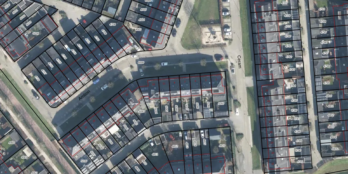 Het perceel waarop Ambon 9 staat heeft een oppervlakte van 156 m². Dit is een middelgroot perceel. De perceeloppervlakte wordt geregistreerd door het Kadaster. Gedetailleerde informatie over de maten van dit perceel kunt u vinden in het rapport Kadastrale kaart met maatvoering van Ambon 9.