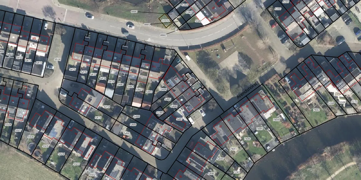 Gebruik de zoekbalk of klik op een perceel voor informatie over de adressen binnen dit perceel.
