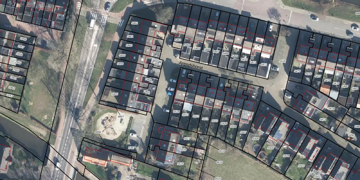 Gebruik de zoekbalk of klik op een perceel voor informatie over de adressen binnen dit perceel.