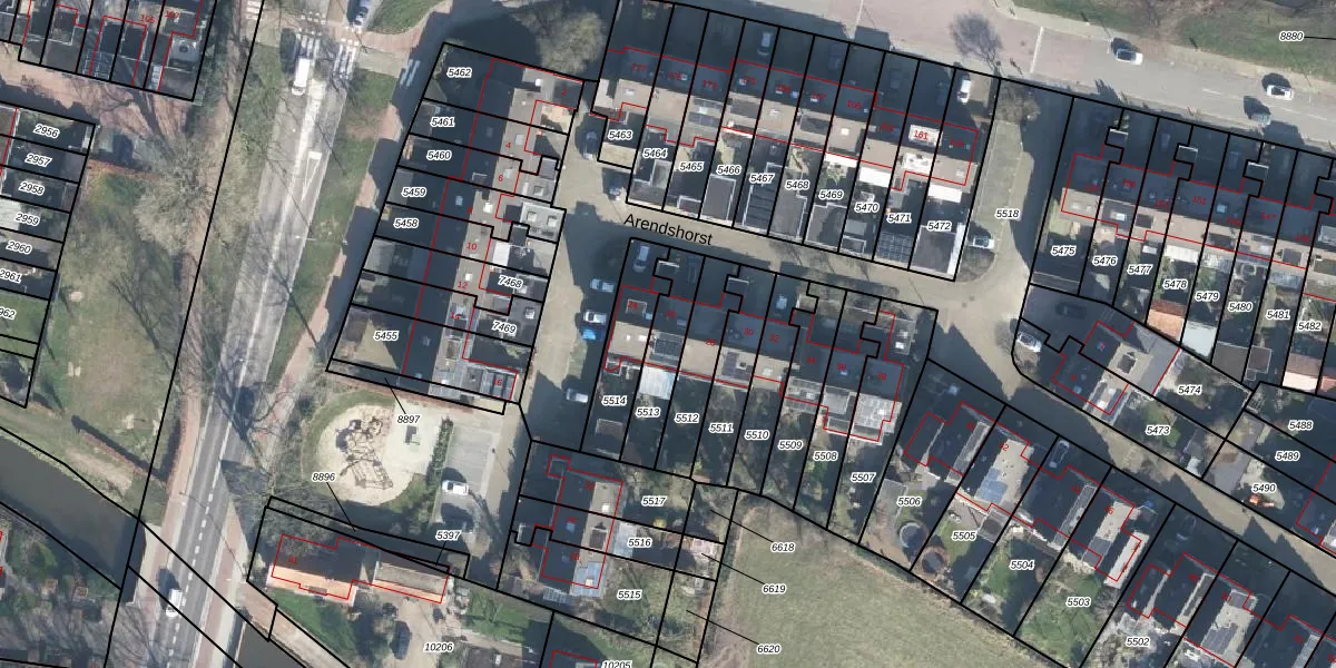 Gebruik de zoekbalk of klik op een perceel voor informatie over de adressen binnen dit perceel.