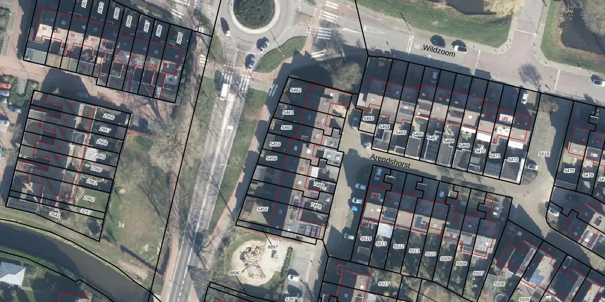 Gebruik de zoekbalk of klik op een perceel voor informatie over de adressen binnen dit perceel.