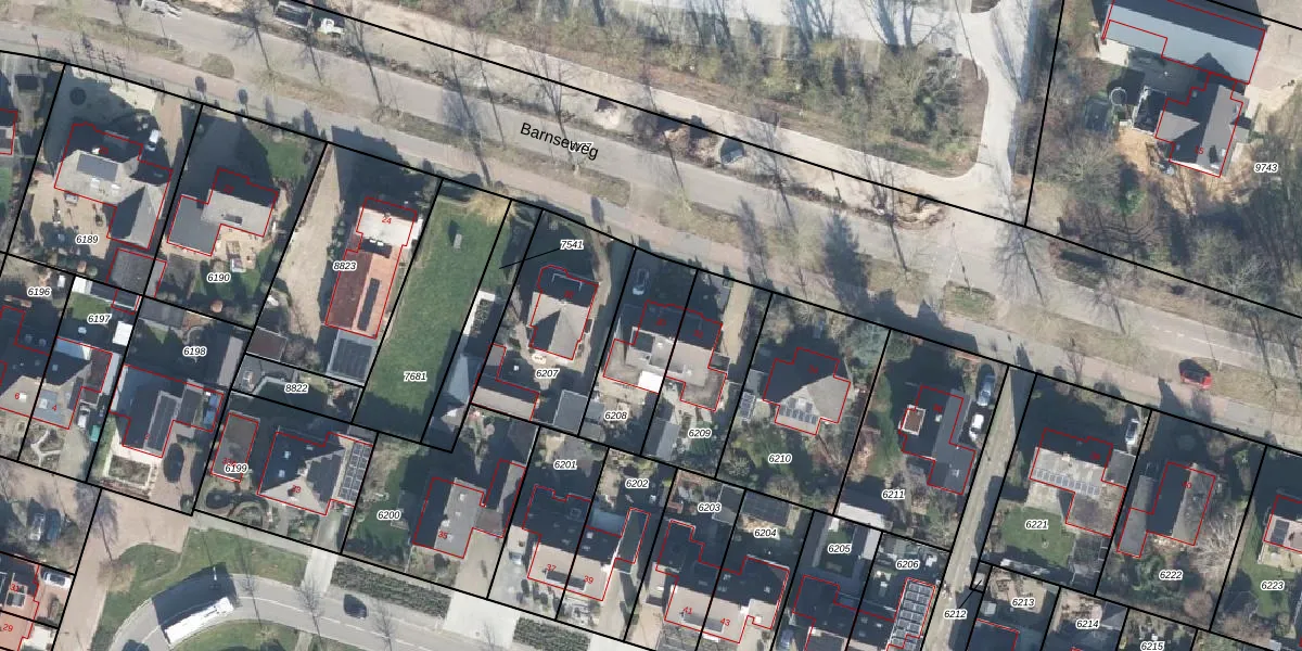 Het perceel waarop Barnseweg 30 staat heeft een oppervlakte van 301 m². Dit is een groot perceel. De perceeloppervlakte wordt geregistreerd door het Kadaster. Gedetailleerde informatie over de maten van dit perceel kunt u vinden in het rapport Kadastrale kaart met maatvoering van Barnseweg 30.