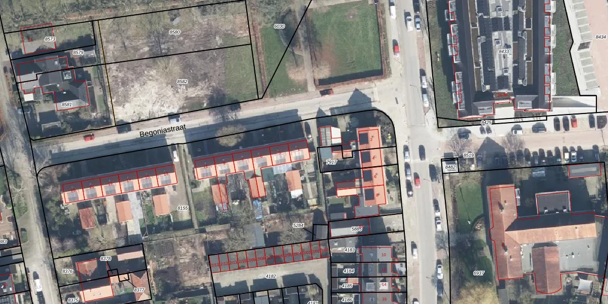 Begoniastraat 1 is gelegen op kadastraal perceel BNV00G8155. Deze kadastrale aanduiding is uniek en wordt gebruikt door het Kadaster om eigendomsrechten en andere zakelijke rechten vast te leggen. Het perceel maakt onderdeel uit van de kadastrale gemeente Barneveld.