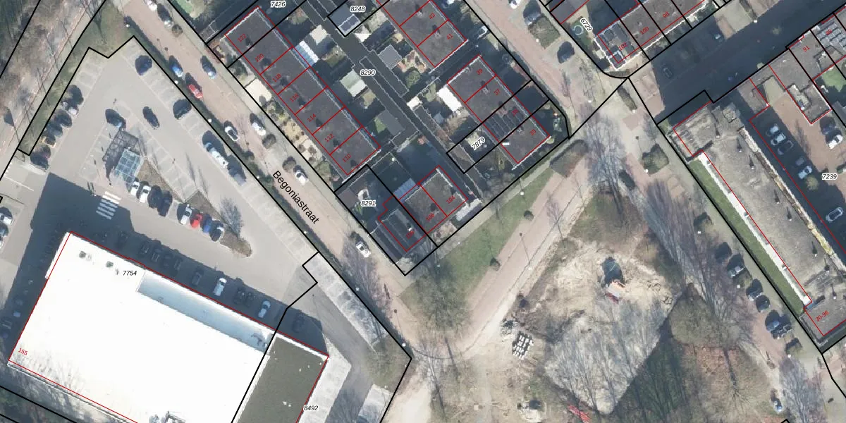 Begoniastraat 106 is gelegen op kadastraal perceel BNV00G8290. Deze kadastrale aanduiding is uniek en wordt gebruikt door het Kadaster om eigendomsrechten en andere zakelijke rechten vast te leggen. Het perceel maakt onderdeel uit van de kadastrale gemeente Barneveld.
