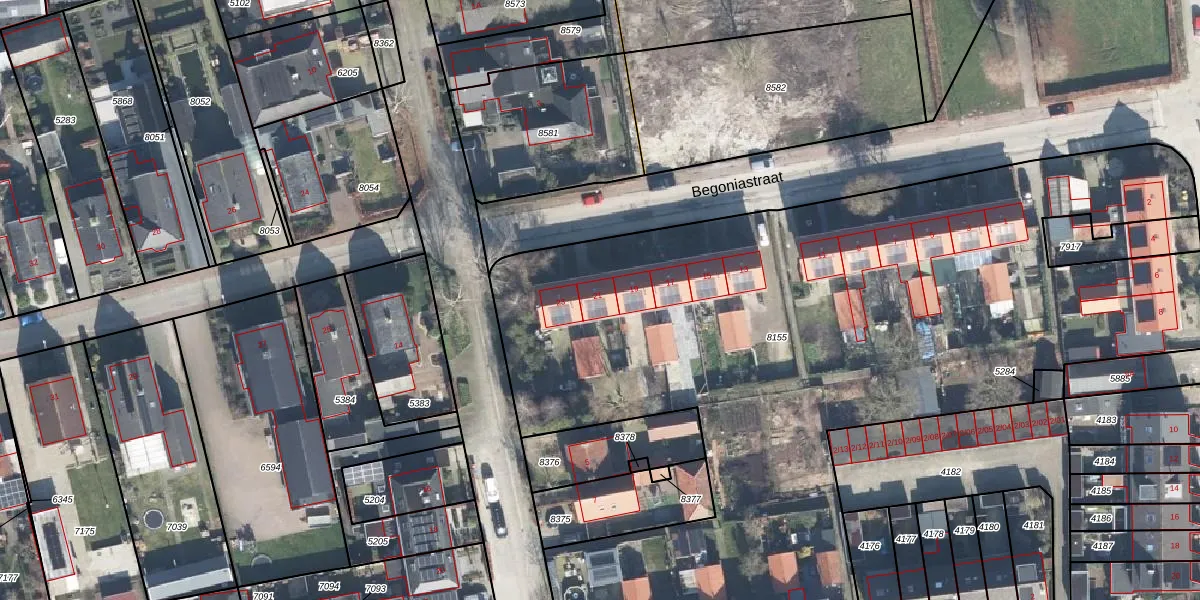 Begoniastraat 21 is gelegen op kadastraal perceel BNV00G8155. Deze kadastrale aanduiding is uniek en wordt gebruikt door het Kadaster om eigendomsrechten en andere zakelijke rechten vast te leggen. Het perceel maakt onderdeel uit van de kadastrale gemeente Barneveld.