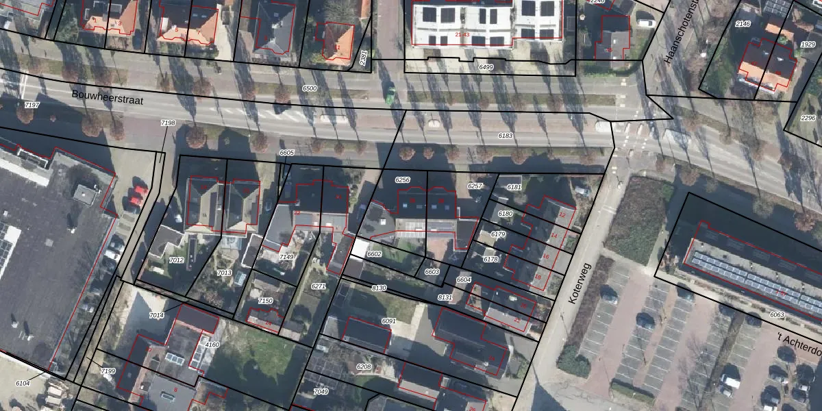 Het perceel waarop Bouwheerstraat 26 staat heeft een oppervlakte van 265 m². Dit is een middelgroot perceel. De perceeloppervlakte wordt geregistreerd door het Kadaster. Gedetailleerde informatie over de maten van dit perceel kunt u vinden in het rapport Kadastrale kaart met maatvoering van Bouwheerstraat 26.