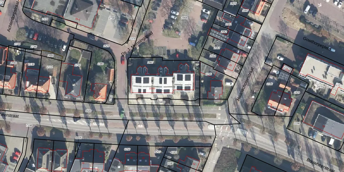 Het perceel waarop Bouwheerstraat 35 staat heeft een oppervlakte van 980 m². Dit is een groot perceel. De perceeloppervlakte wordt geregistreerd door het Kadaster. Gedetailleerde informatie over de maten van dit perceel kunt u vinden in het rapport Kadastrale kaart met maatvoering van Bouwheerstraat 35.