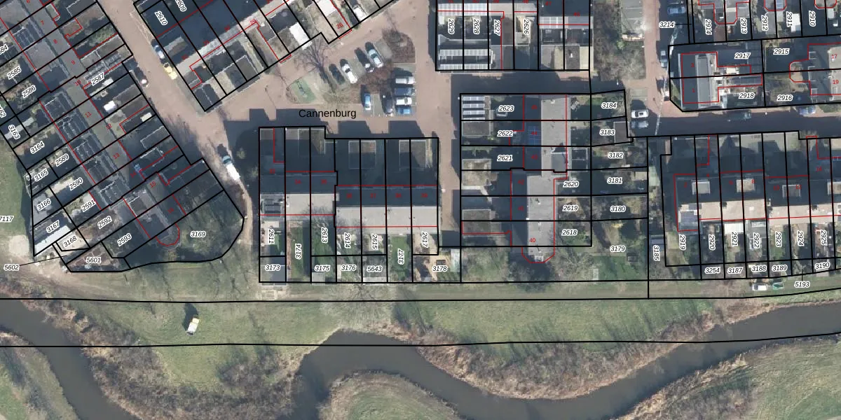 Het perceel waarop Cannenburg 39 staat heeft een oppervlakte van 176 m². Dit is een middelgroot perceel. De perceeloppervlakte wordt geregistreerd door het Kadaster. Gedetailleerde informatie over de maten van dit perceel kunt u vinden in het rapport Kadastrale kaart met maatvoering van Cannenburg 39.