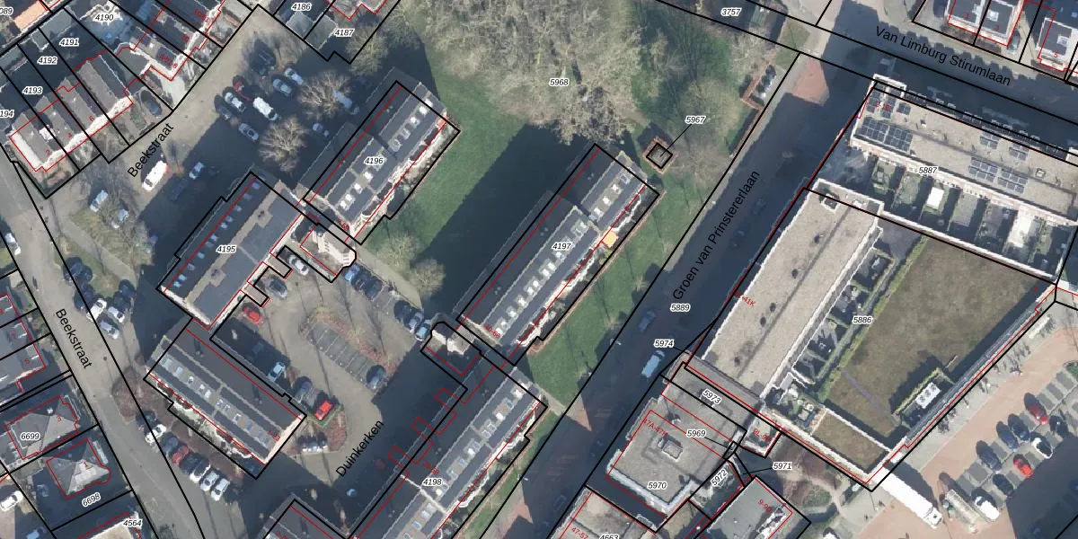 Duinkerken 44 is gelegen op kadastraal perceel BNV00B4197. Deze kadastrale aanduiding is uniek en wordt gebruikt door het Kadaster om eigendomsrechten en andere zakelijke rechten vast te leggen. Het perceel maakt onderdeel uit van de kadastrale gemeente Barneveld.