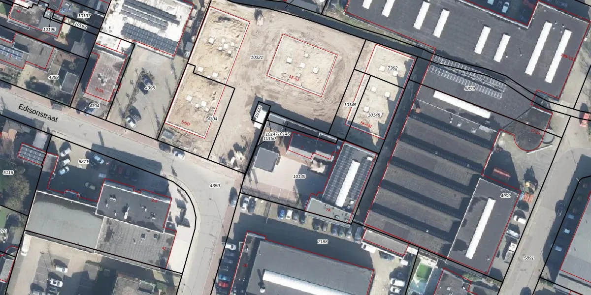 Het perceel waarop Edisonstraat 7 staat heeft een oppervlakte van 1030 m². Dit is een zeer groot perceel. De perceeloppervlakte wordt geregistreerd door het Kadaster. Gedetailleerde informatie over de maten van dit perceel kunt u vinden in het rapport Kadastrale kaart met maatvoering van Edisonstraat 7.
