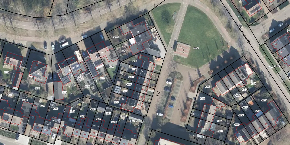 Het adres is gelegen op perceel 6233 in de sectie C en de kadastrale gemeente Barneveld. De kadastrale aanduiding is aldus BNV00-C-6233. Het perceel is 151 m² groot. Dat is kleiner dan de gemiddelde perceeloppervlakte in Barneveld, dat op 3129,58 m² ligt. Het grootste perceel in de kadastrale gemeente is 23,8 ha. Het kleinste perceel heeft een oppervlakte van 0 m². Op het perceel bevinden zich geen andere adressen. De huidige grenzen van het perceel zijn digitaal in de Basisregistratie Kadaster (BRK) geregistreerd op 08-05-2002.