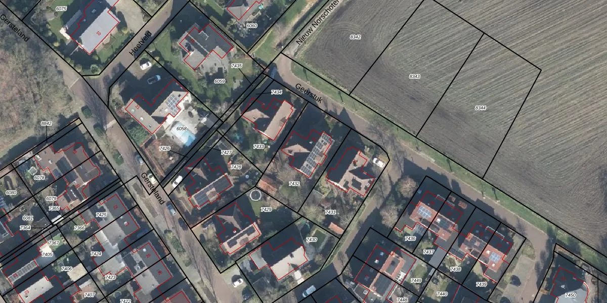 Het perceel waarop Geerstuk 23 staat heeft een oppervlakte van 546 m². Dit is een groot perceel. De perceeloppervlakte wordt geregistreerd door het Kadaster. Gedetailleerde informatie over de maten van dit perceel kunt u vinden in het rapport Kadastrale kaart met maatvoering van Geerstuk 23.