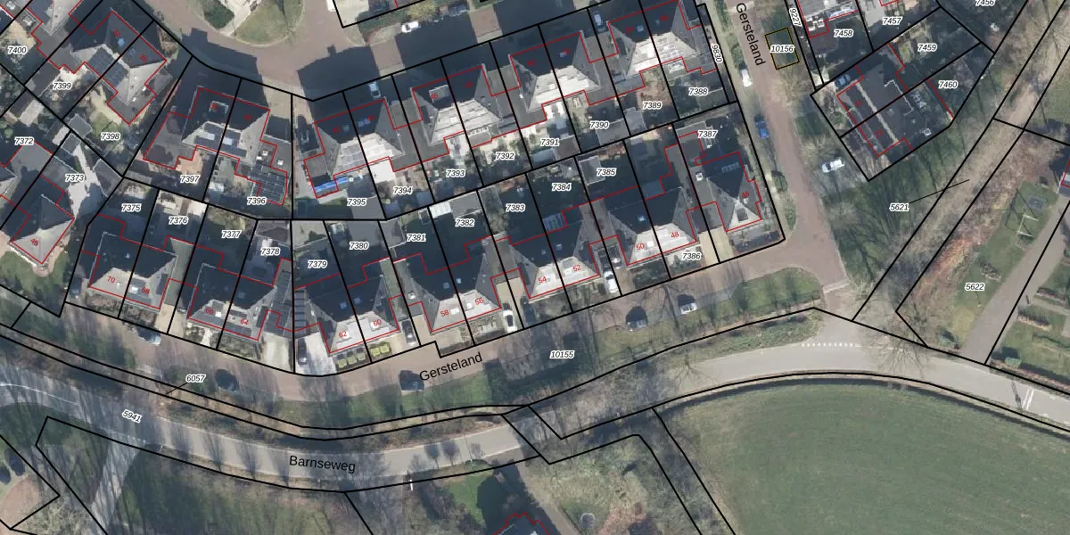 Gersteland 54 is gelegen op kadastraal perceel BNV00C7383. Deze kadastrale aanduiding is uniek en wordt gebruikt door het Kadaster om eigendomsrechten en andere zakelijke rechten vast te leggen. Het perceel maakt onderdeel uit van de kadastrale gemeente Barneveld.