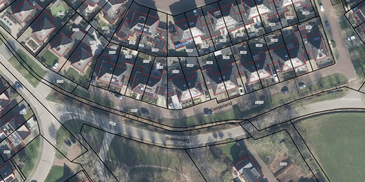Gersteland 62 is gelegen op kadastraal perceel BNV00C7379. Deze kadastrale aanduiding is uniek en wordt gebruikt door het Kadaster om eigendomsrechten en andere zakelijke rechten vast te leggen. Het perceel maakt onderdeel uit van de kadastrale gemeente Barneveld.