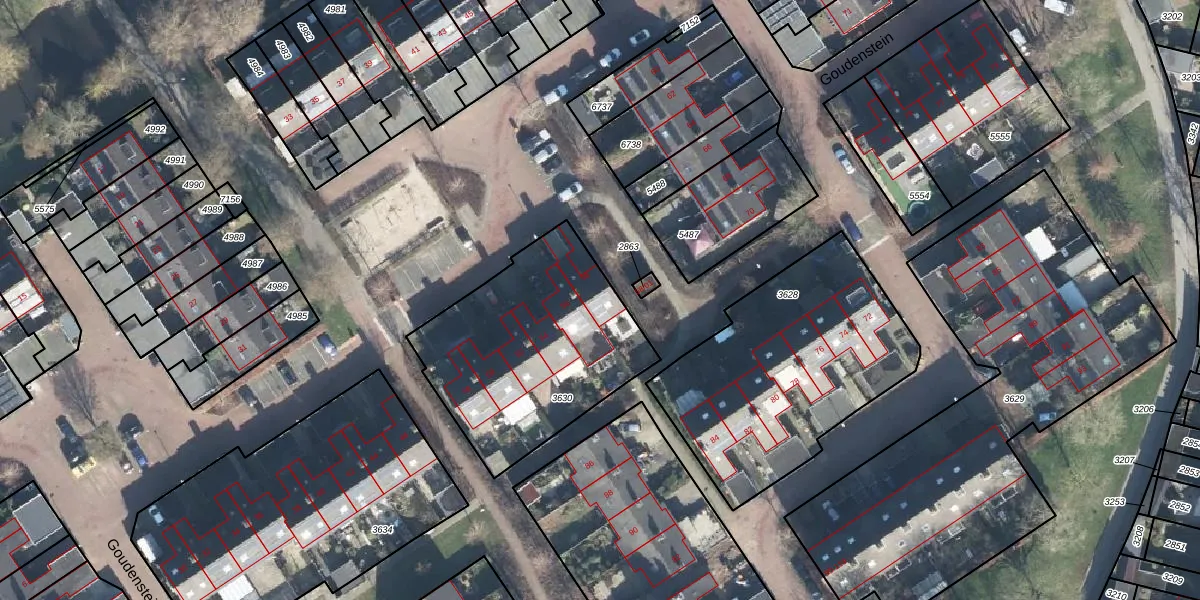 Het perceel waarop Goudenstein 58 staat heeft een oppervlakte van 939 m². Dit is een groot perceel. De perceeloppervlakte wordt geregistreerd door het Kadaster. Gedetailleerde informatie over de maten van dit perceel kunt u vinden in het rapport Kadastrale kaart met maatvoering van Goudenstein 58.