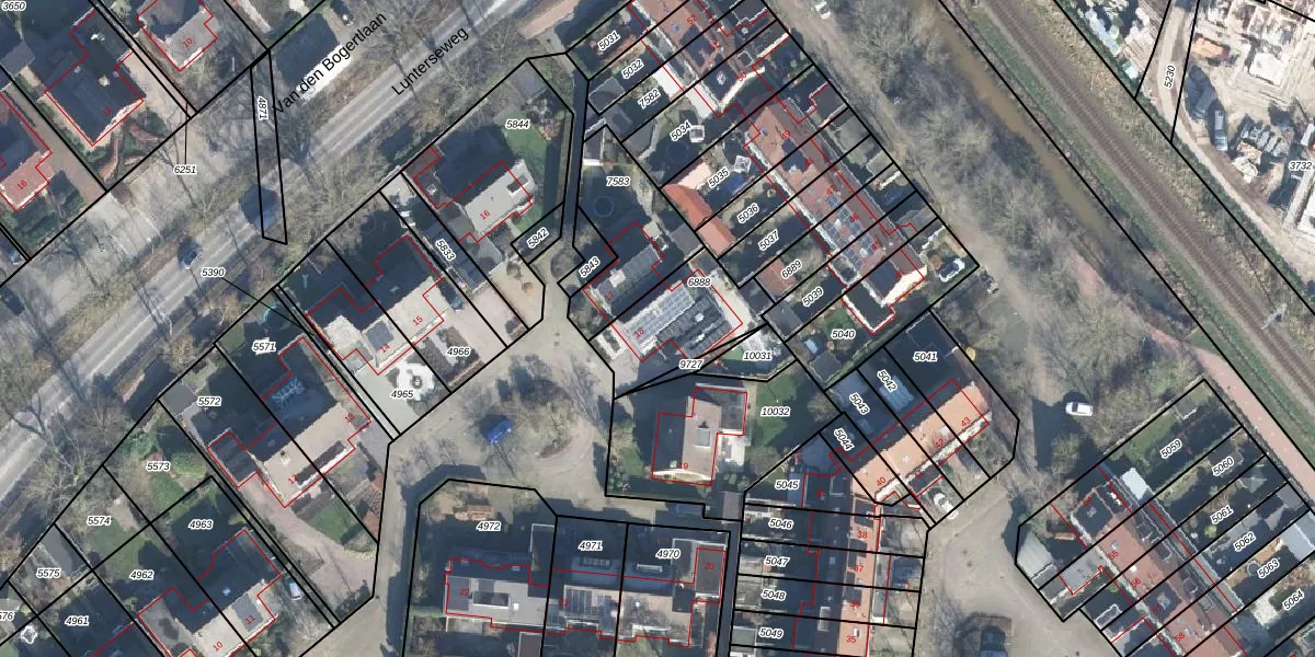 Gebruik de zoekbalk of klik op een perceel voor informatie over de adressen binnen dit perceel.