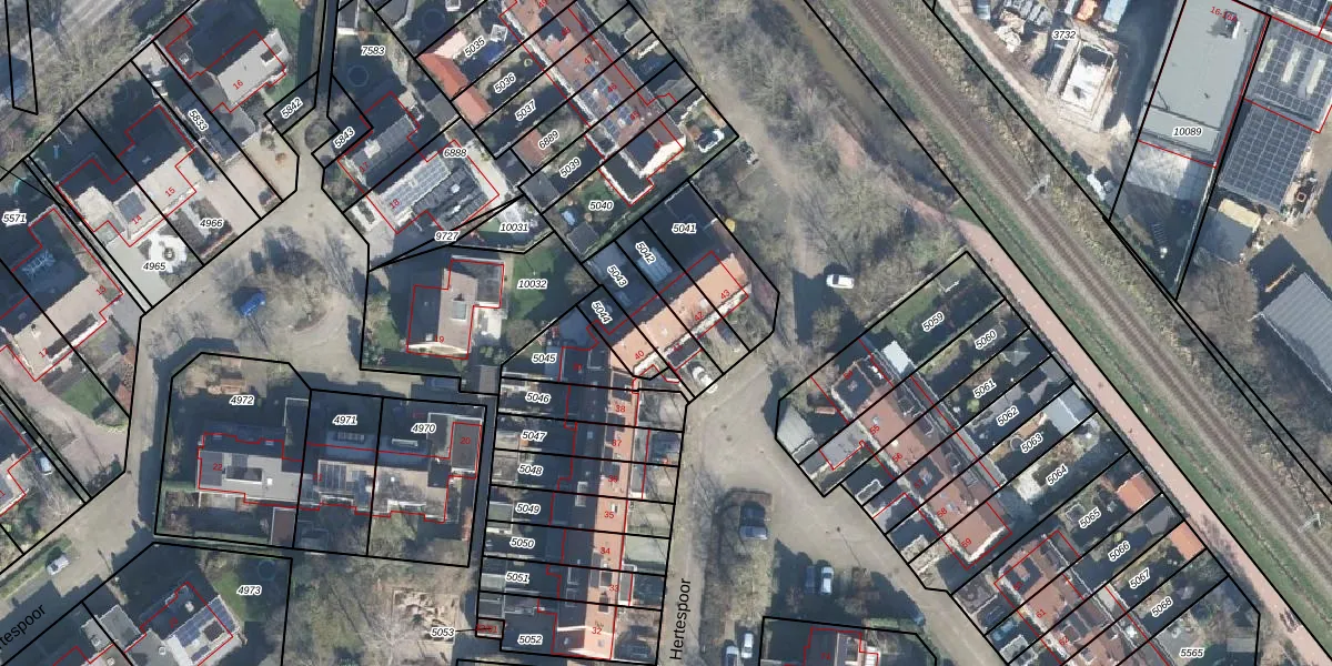 Hertespoor 41 is gelegen op kadastraal perceel BNV00C5043. Deze kadastrale aanduiding is uniek en wordt gebruikt door het Kadaster om eigendomsrechten en andere zakelijke rechten vast te leggen. Het perceel maakt onderdeel uit van de kadastrale gemeente Barneveld.