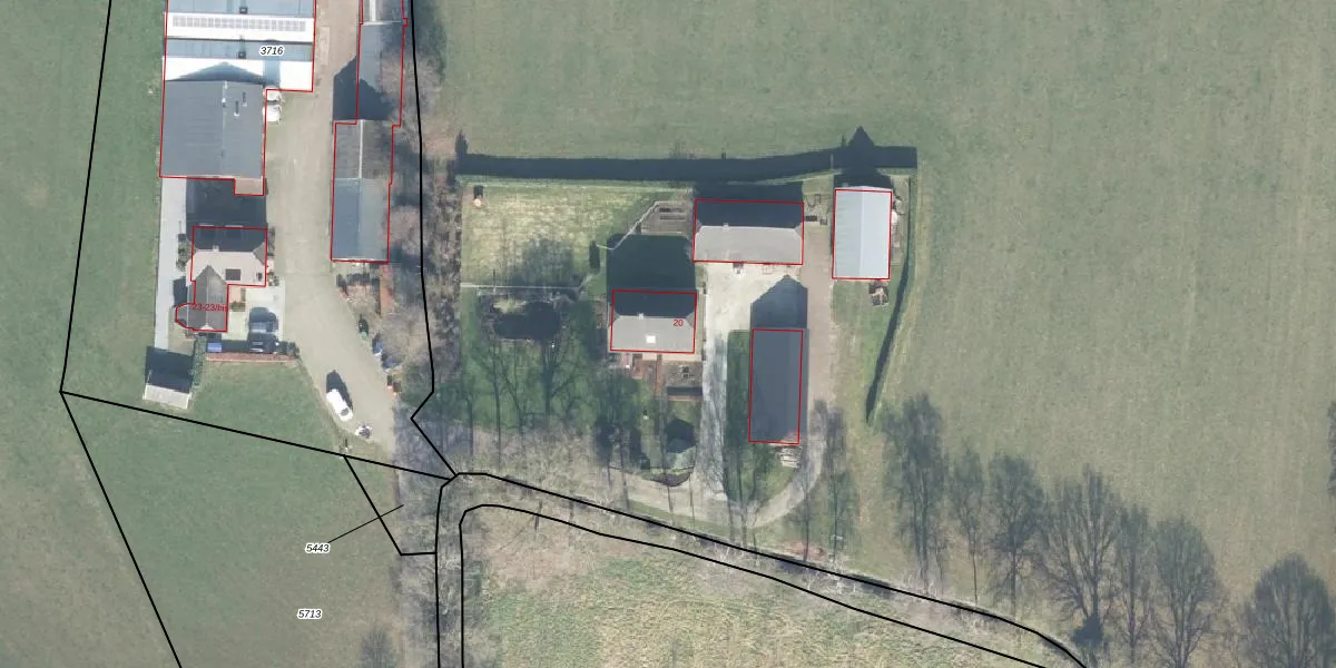 Het perceel waarop Hoornweg 20 staat heeft een oppervlakte van 2,6 ha. Dit is een zeer groot perceel. De perceeloppervlakte wordt geregistreerd door het Kadaster. Gedetailleerde informatie over de maten van dit perceel kunt u vinden in het rapport Kadastrale kaart met maatvoering van Hoornweg 20.