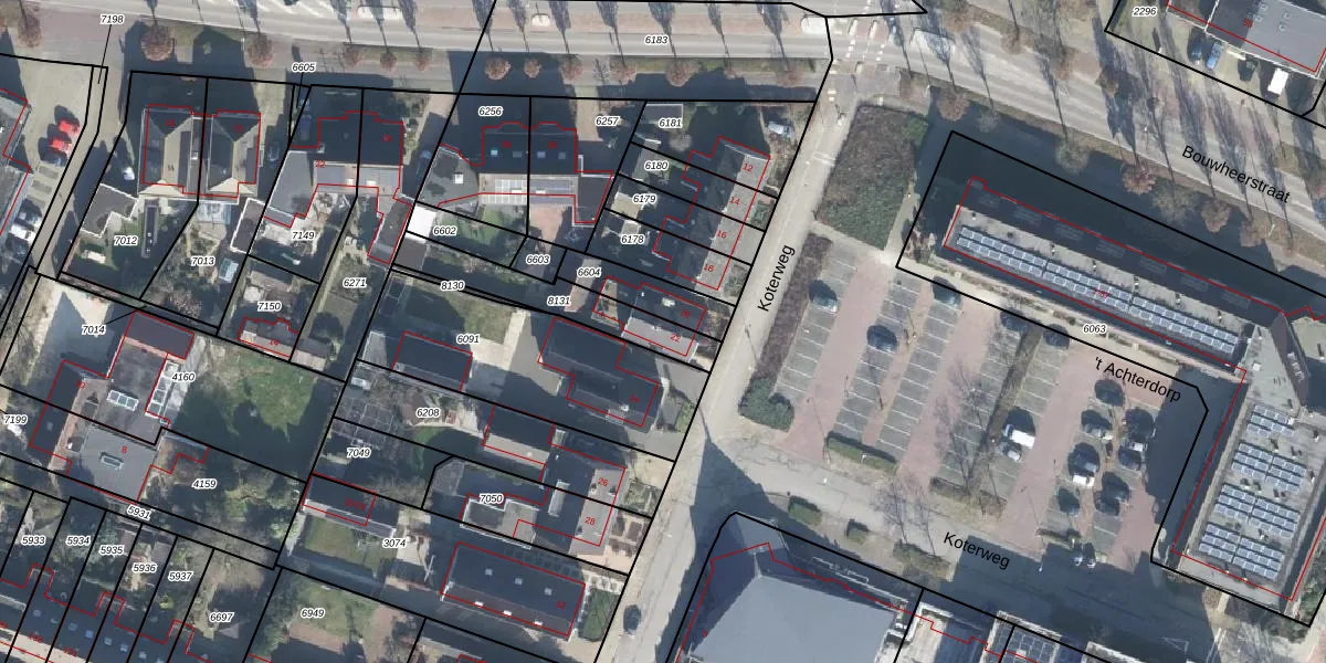Het perceel waarop Koterweg 22 staat heeft een oppervlakte van 256 m². Dit is een middelgroot perceel. De perceeloppervlakte wordt geregistreerd door het Kadaster. Gedetailleerde informatie over de maten van dit perceel kunt u vinden in het rapport Kadastrale kaart met maatvoering van Koterweg 22.