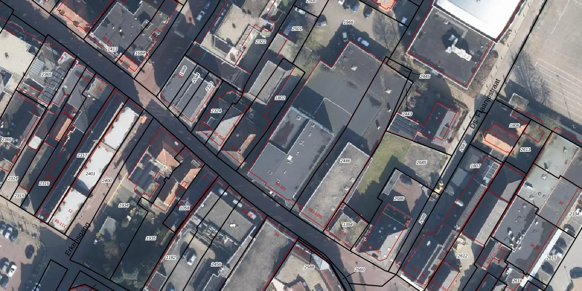 Het adres is gelegen op perceel 1966 in de sectie D en de kadastrale gemeente Barneveld. De kadastrale aanduiding is aldus BNV00-D-1966. De gemiddelde perceelgrootte in Barneveld is 3133,96 m². Dit perceel is kleiner: de perceeloppervlakte bedraagt 1784 m². Het kleinste perceel in de kadastrale gemeente is 0 m² groot. De grootste perceeloppervlakte is 23,8 ha. Op het perceel zijn 11 adressen aanwezig. In de Basisregistratie Kadaster (BRK) werden de grenzen van het perceel geregistreerd op 10-05-2002.