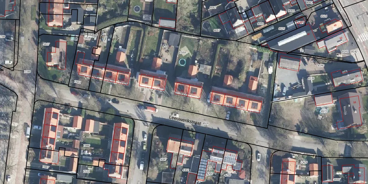 Het perceel waarop Leeuwerikstraat 12 staat heeft een oppervlakte van 3850 m². Dit is een zeer groot perceel. De perceeloppervlakte wordt geregistreerd door het Kadaster. Gedetailleerde informatie over de maten van dit perceel kunt u vinden in het rapport Kadastrale kaart met maatvoering van Leeuwerikstraat 12.
