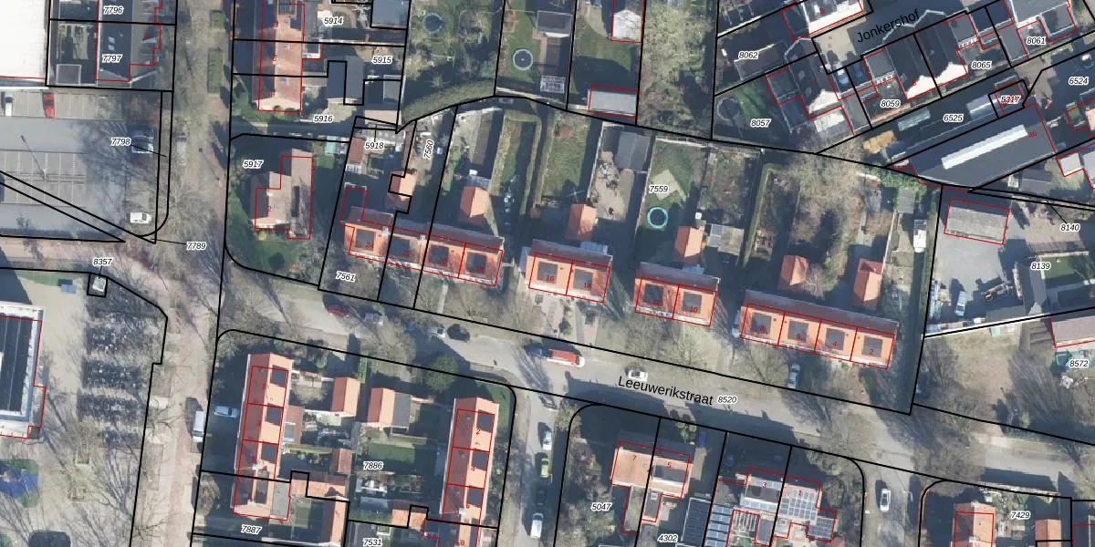 Het perceel waarop Leeuwerikstraat 16 staat heeft een oppervlakte van 3850 m². Dit is een zeer groot perceel. De perceeloppervlakte wordt geregistreerd door het Kadaster. Gedetailleerde informatie over de maten van dit perceel kunt u vinden in het rapport Kadastrale kaart met maatvoering van Leeuwerikstraat 16.