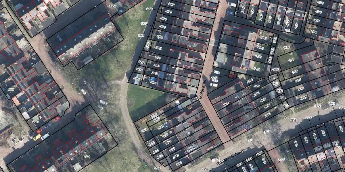 Gebruik de zoekbalk of klik op een perceel voor informatie over de adressen binnen dit perceel.
