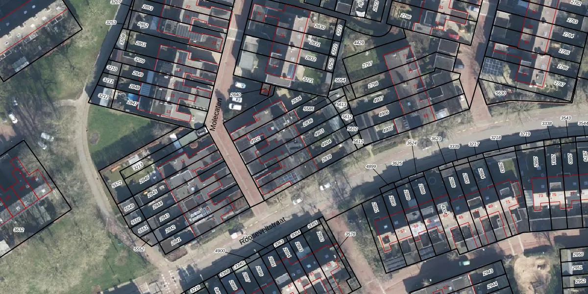 Het perceel waarop Molecaten 6 staat heeft een oppervlakte van 162 m². Dit is een middelgroot perceel. De perceeloppervlakte wordt geregistreerd door het Kadaster. Gedetailleerde informatie over de maten van dit perceel kunt u vinden in het rapport Kadastrale kaart met maatvoering van Molecaten 6.