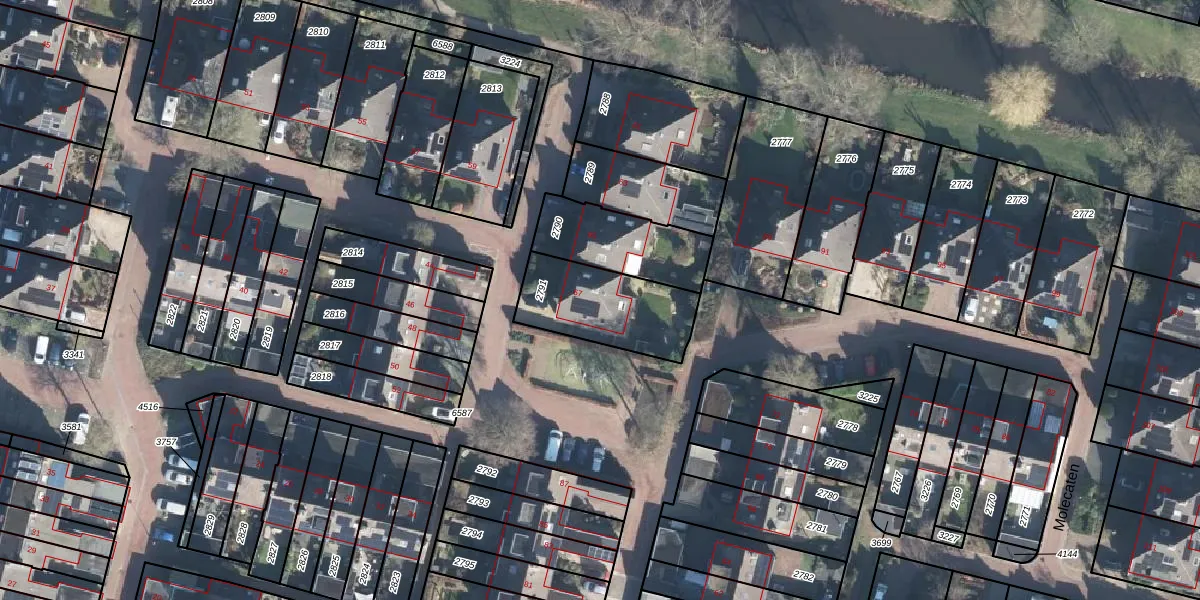 Het perceel waarop Molecaten 67 staat heeft een oppervlakte van 359 m². Dit is een groot perceel. De perceeloppervlakte wordt geregistreerd door het Kadaster. Gedetailleerde informatie over de maten van dit perceel kunt u vinden in het rapport Kadastrale kaart met maatvoering van Molecaten 67.