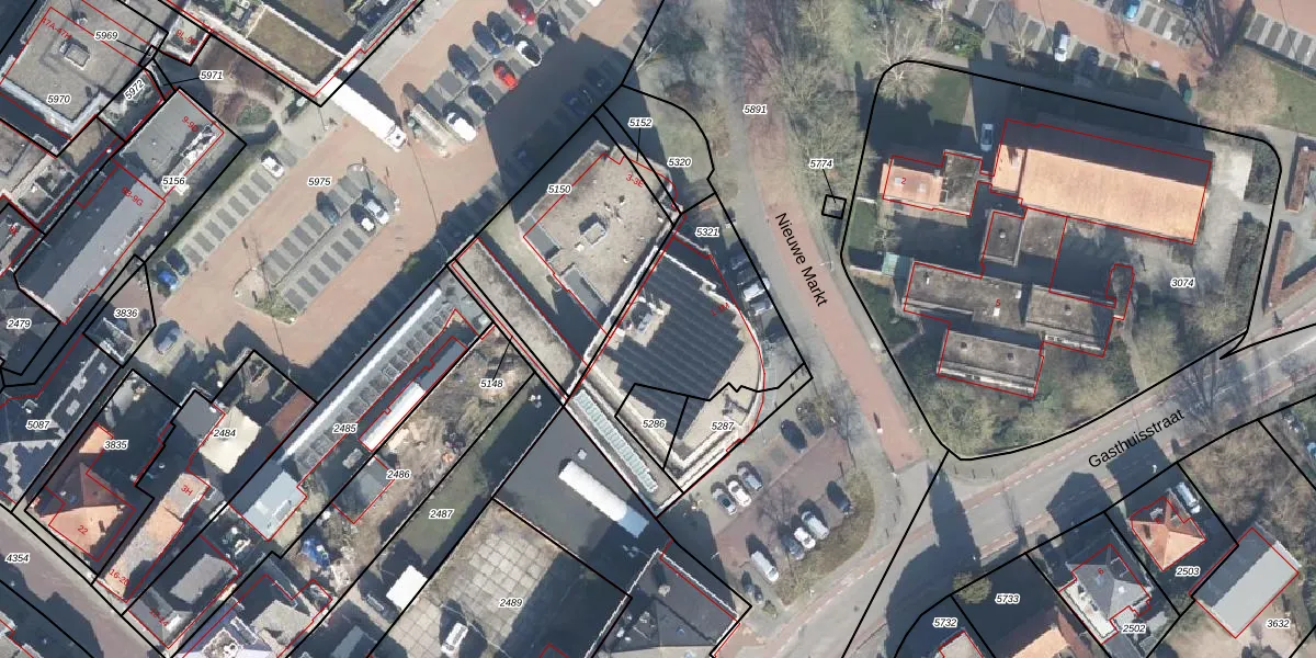 Het perceel waarop Nieuwe Markt 1 staat heeft een oppervlakte van 718 m². Dit is een groot perceel. De perceeloppervlakte wordt geregistreerd door het Kadaster. Gedetailleerde informatie over de maten van dit perceel kunt u vinden in het rapport Kadastrale kaart met maatvoering van Nieuwe Markt 1.