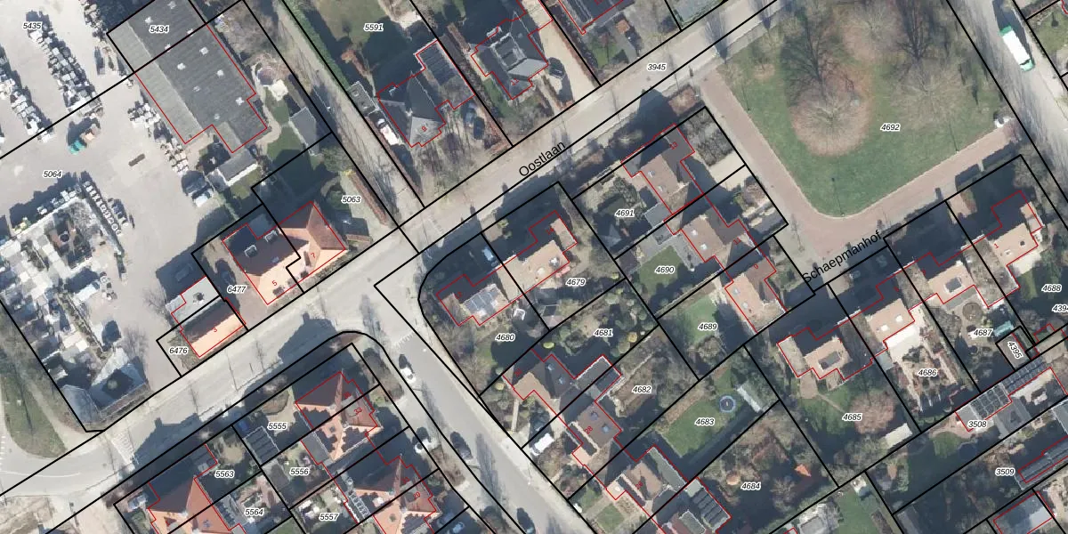 Het perceel waarop Oostlaan 14 staat heeft een oppervlakte van 381 m². Dit is een groot perceel. De perceeloppervlakte wordt geregistreerd door het Kadaster. Gedetailleerde informatie over de maten van dit perceel kunt u vinden in het rapport Kadastrale kaart met maatvoering van Oostlaan 14.